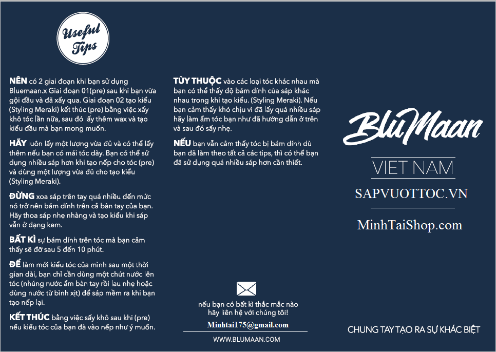 BluMaan Styling Meraki Tê Giác là một sản phẩm tạo kiểu tóc hoàn hảo, được thực hiện bởi Joe và cộng đồng Blumaan. Hỗ trợ mạnh mẽ mái tóc của bạn cả ngày, không có gì có thể ngăn cản kiểu tóc của bạn trong các hoạt động hàng ngày. Styling Meraki có một kết thúc mờ, trông như thể không có gì trong mái tóc của bạn, tạo cho bạn một cái nhìn tự nhiên .