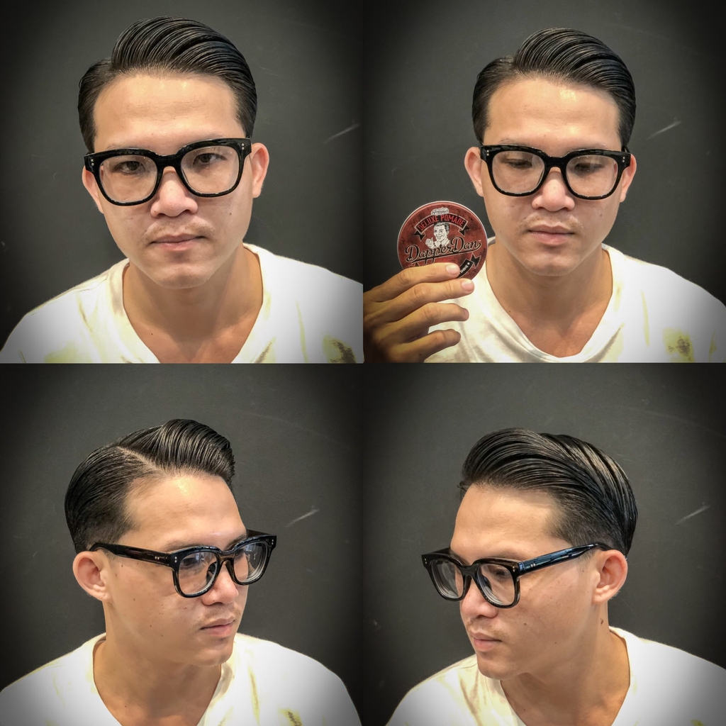 - Tạo kiểu Deluxe Pomade: Dùng lược chải hoặc dùng tay để tạo kiểu tóc mà bạn muốn. Có thể dùng thêm pomade hoặc nước theo ý muốn để tạo một kiểu tóc hoàn hảo. Dapper Dan Deluxe Pomade không bị khô cứng lại trên tóc nên bạn có thể tạo lại kiểu tóc theo ý muốn vào bất cứ lúc nào trong ngày mà không sợ bị mất nếp hay độ bóng.