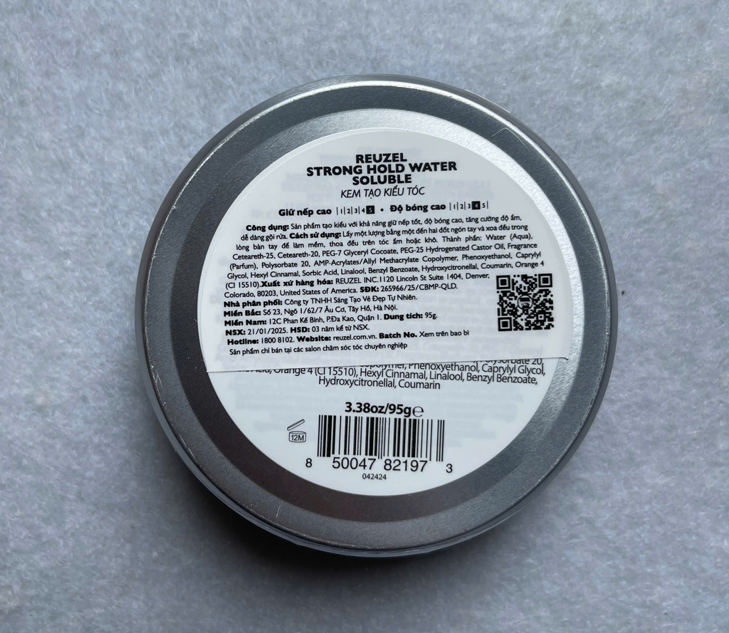 Pomade Reuzel Blue Chính Hãng có tem vỡ chống hàng giả của bộ công an, Có tem phụ dưới đáy lọ với đầy đủ thông tin của nhà sản xuất và công ty phân phối, Hạn sử dụng