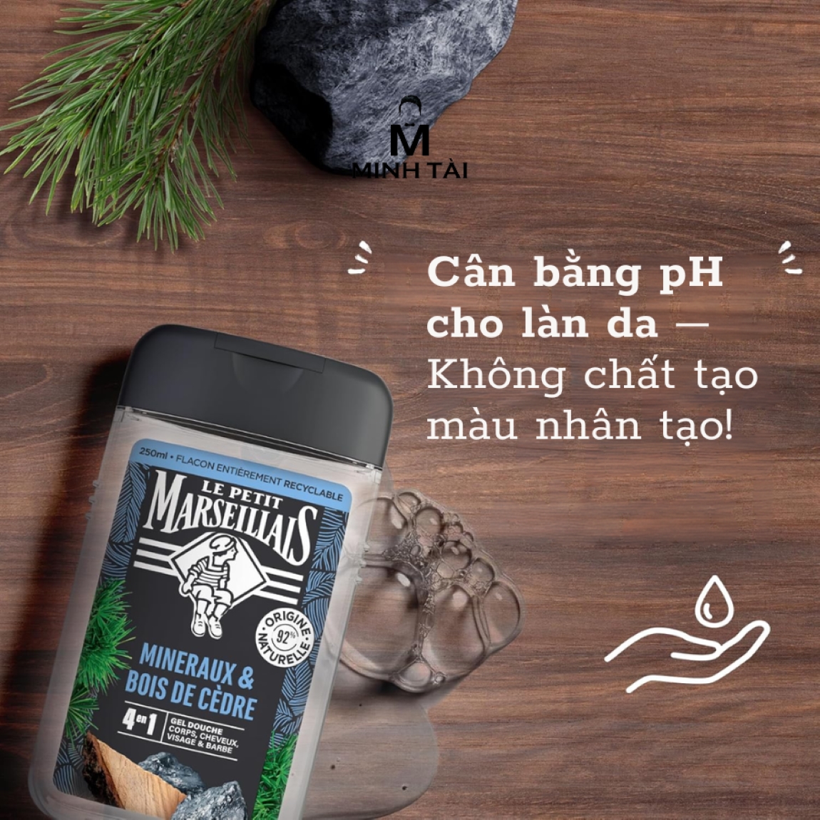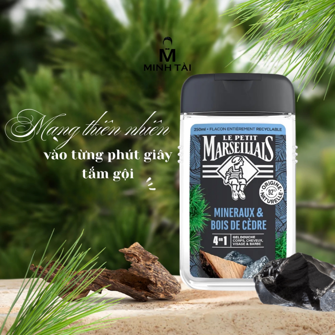 Gel Tắm Pháp Dành Cho Nam Le Petit Marseillais 4in1 Chiết Xuất Khoáng Chất & Gỗ Tuyết Tùng – Sảng khoái, mạnh mẽ và tự nhiên