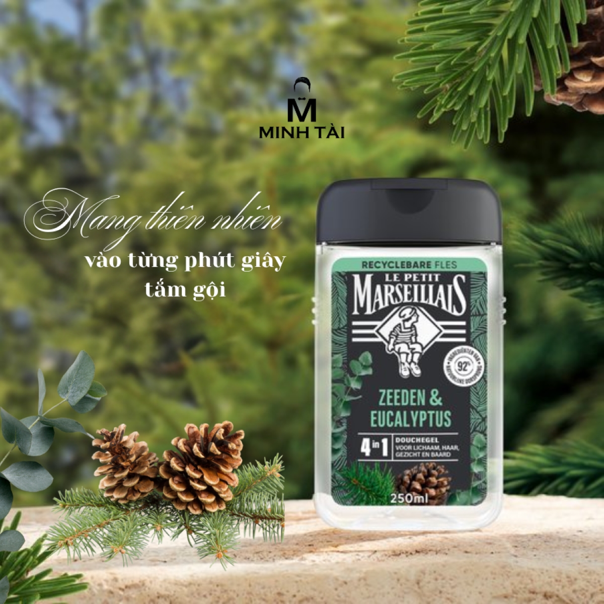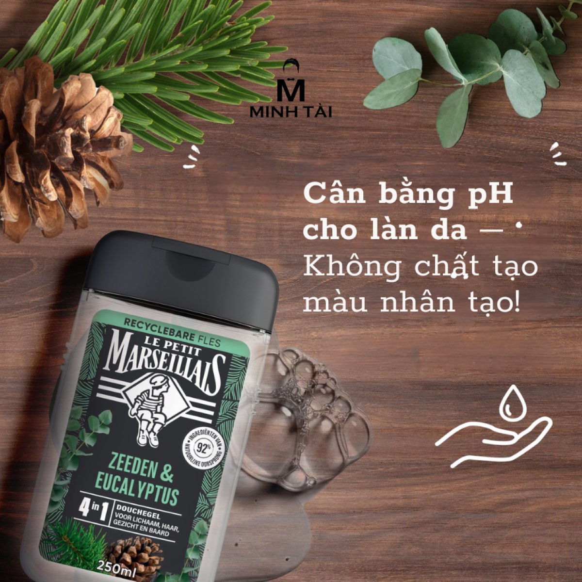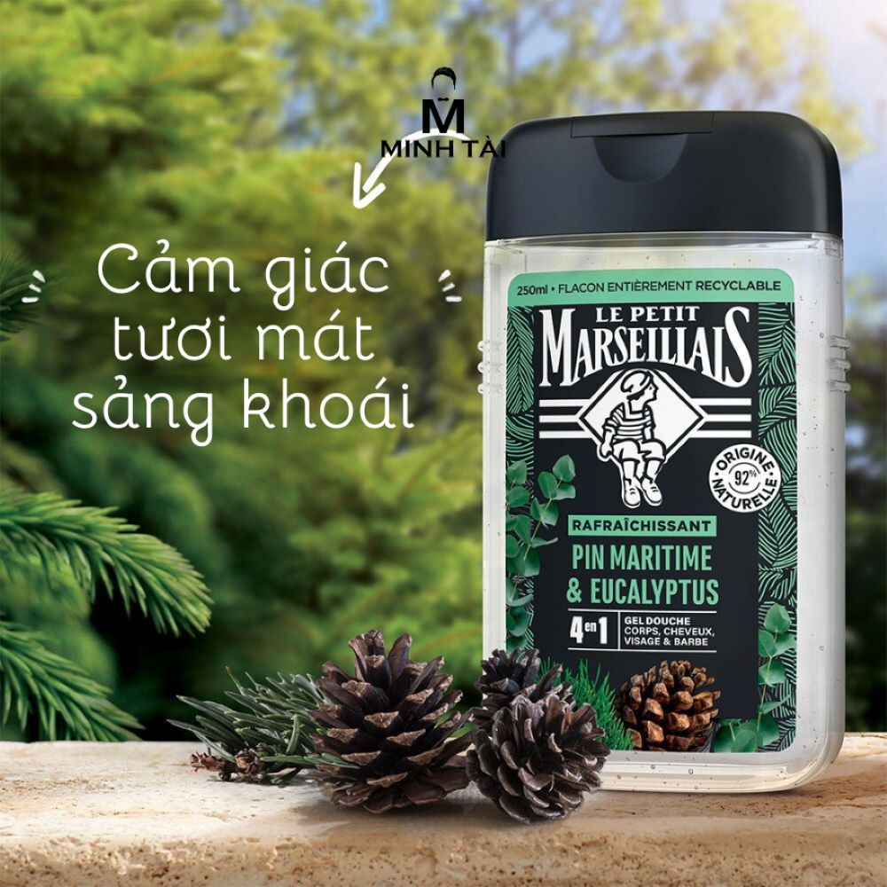 Gel Tắm Pháp Dành Cho Nam Le Petit Marseillais 4in1 Gỗ Thông Biển & Bạch Đàn – Đánh thức giác quan, sảng khoái tinh thần