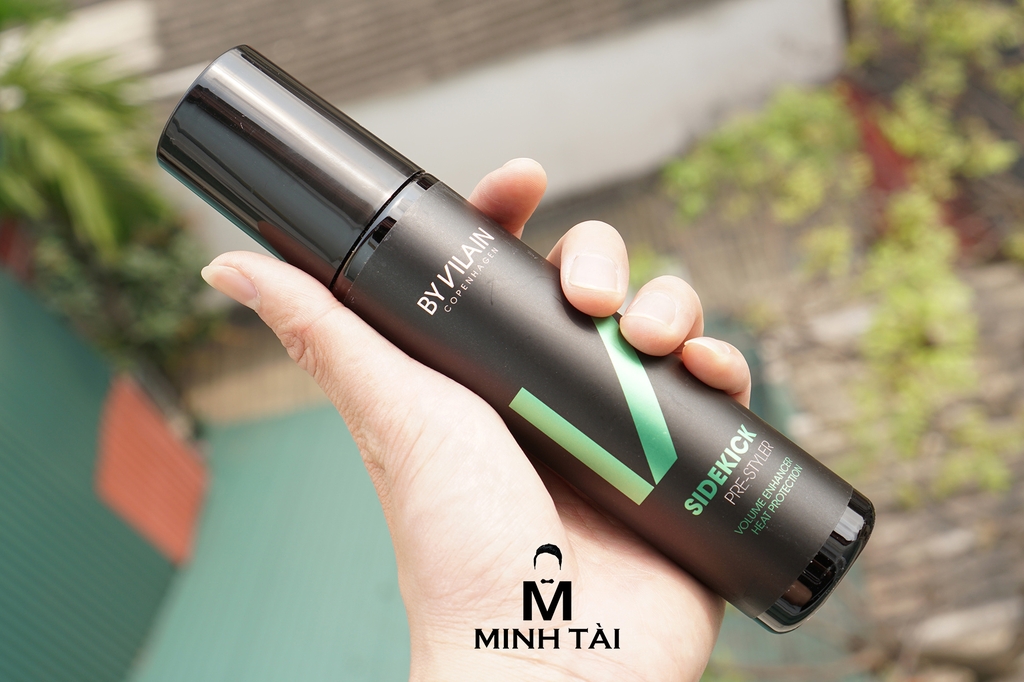 - By Vilain Sidekick là sản phẩm chai xịt giữ nếp pre-styling spray bảo vệ tóc khỏi nhiệt độ cao trước khi sấy, giúp bạn có một mái tóc tự nhiên, khỏe mạnh. Ngoài ra Sidekick còn giúp tóc bạn định hình kiểu tóc, giữ nếp lâu hơn, làm mái tóc phồng và trông dày hơn. Nếu bạn là người hay sấy tóc tạo kiểu, hãy đầu tư và trải nghiệm ngay.